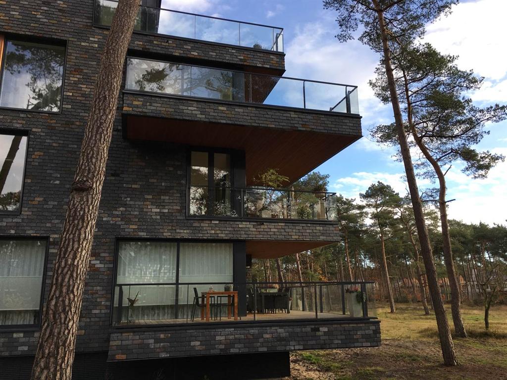 Het appartementencomplex ligt gelegen in bosrijk gebied. De glazen balkonhekken geven veiligheid zonder het mooie uitzicht te belemmeren.