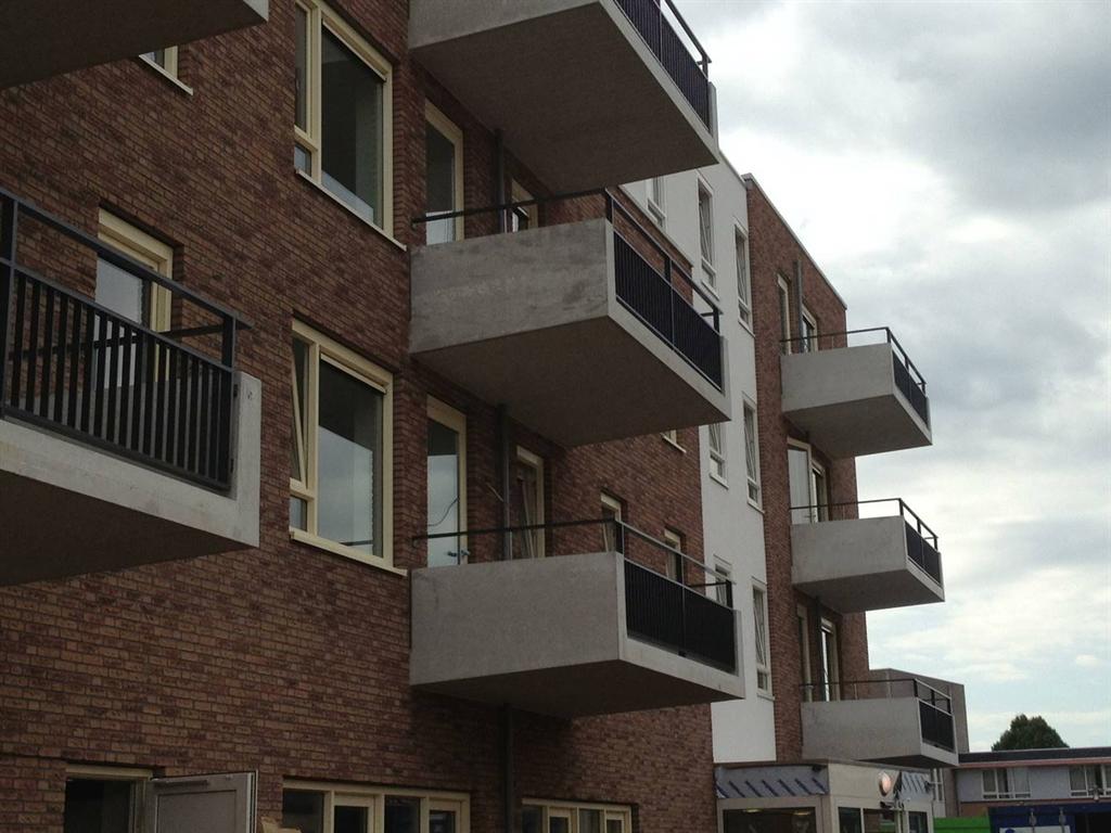 balkonhekken geplaatst tussen de betonnen balkons. De